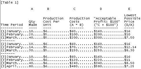 Table 1, below, distinguishes SES-1 from EOS by showing their distinct causation on price. It involves three scenarios for a company with a lowest acceptable profit of $100 a month. For simplicity, let's also assume "production costs" are all business costs necessary for the product to exist.